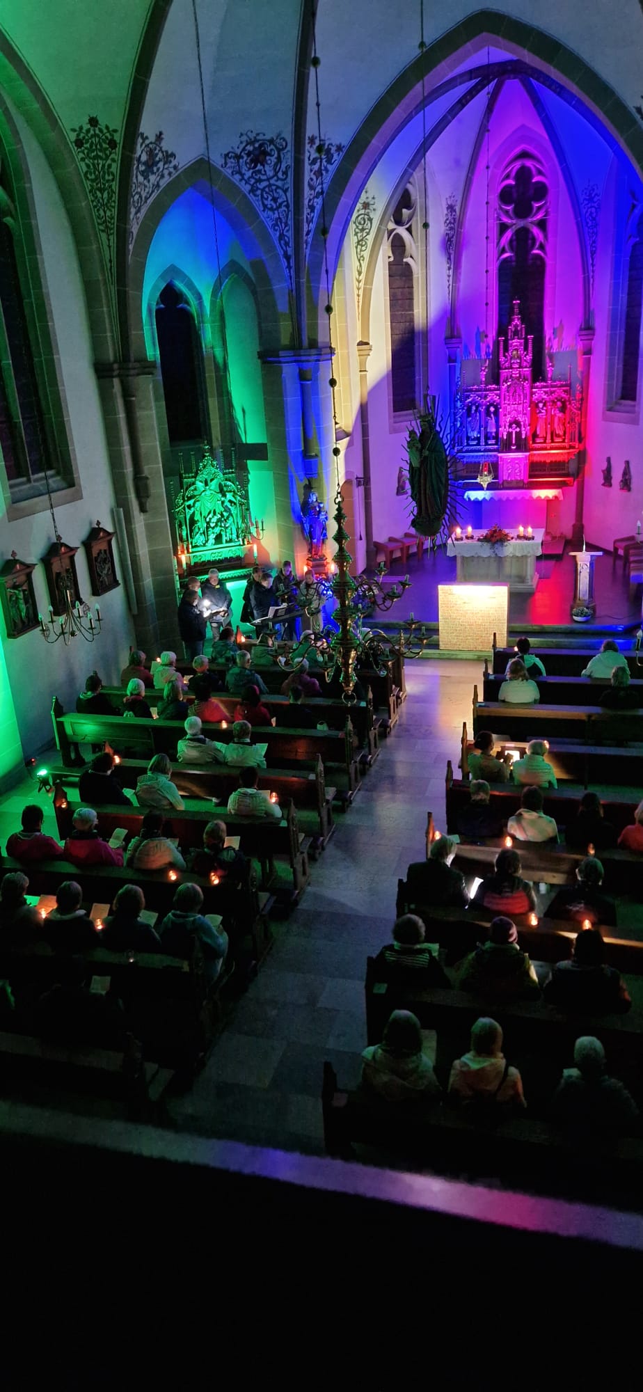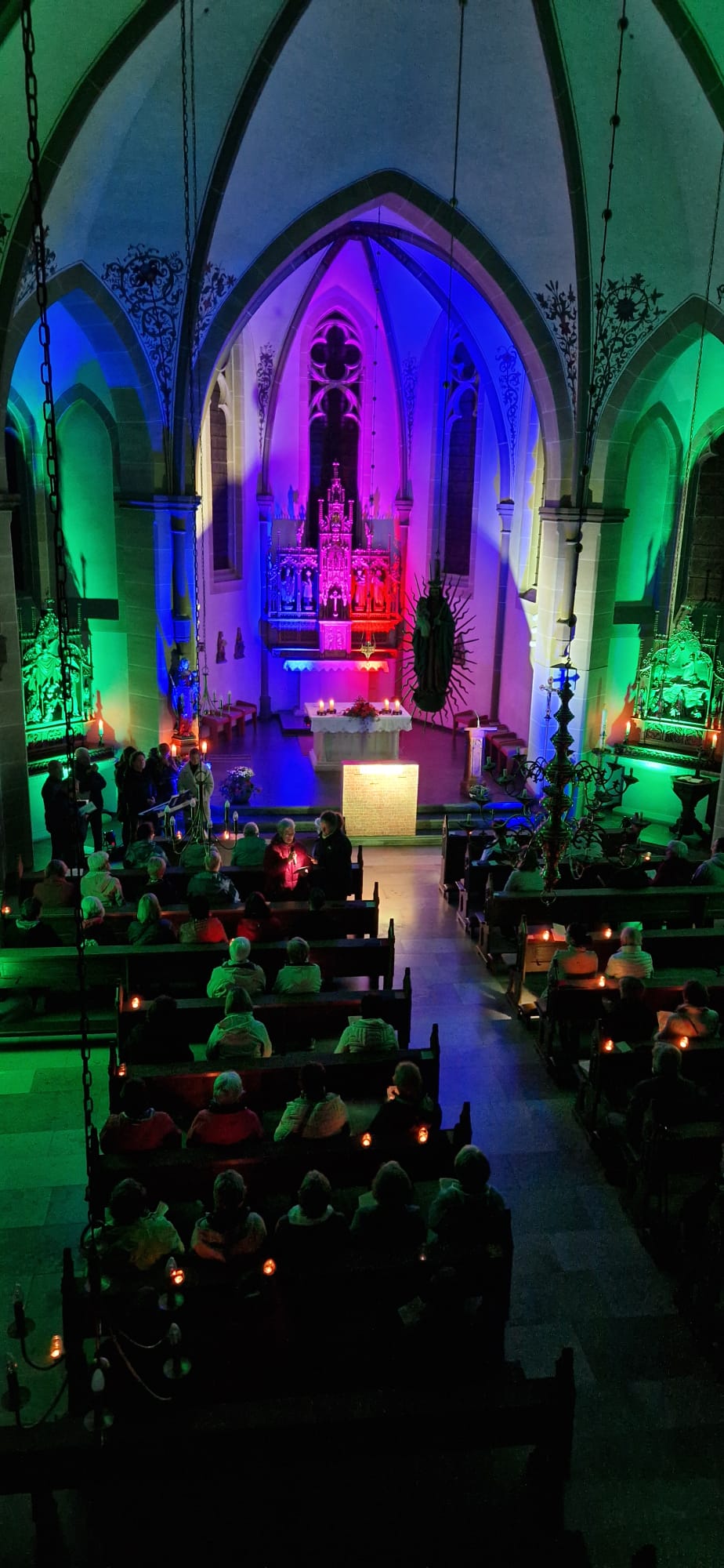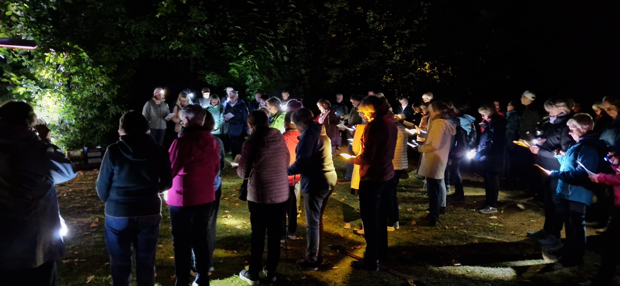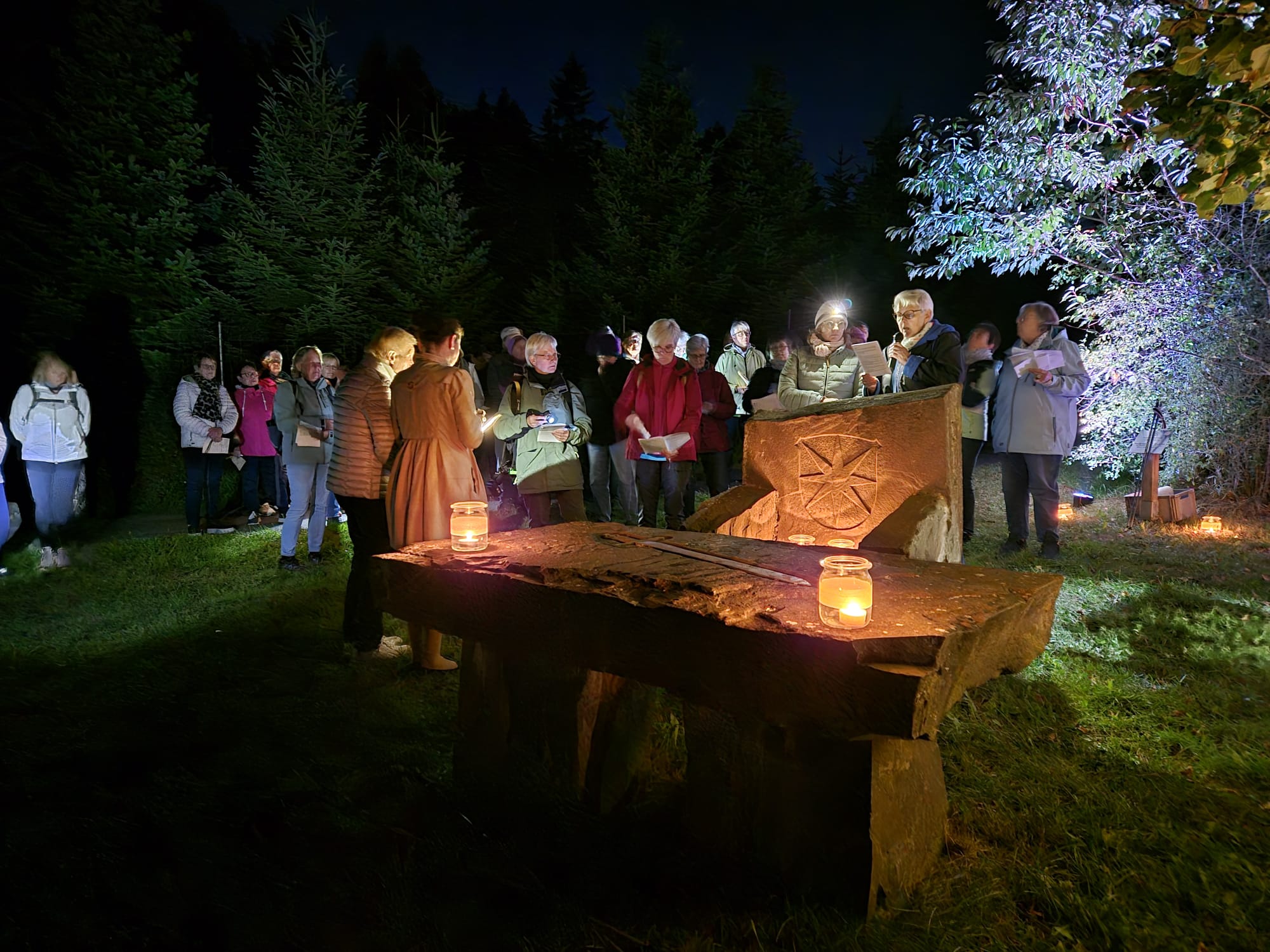 Am 12.09.2025 trafen sich ungefähr 70 Interessierte in Düdinghausen zur diesjährigen Lichterwallfahrt unseres Pastoralen Raumes Medebach/Hallenberg. An drei verschiedenen Orten beteten, sangen und dachten die Wallfahrer über das Thema „Versöhnung leben“ nach. Verschiedene Aspekte wurde an drei Stationen in den Blick genommen.