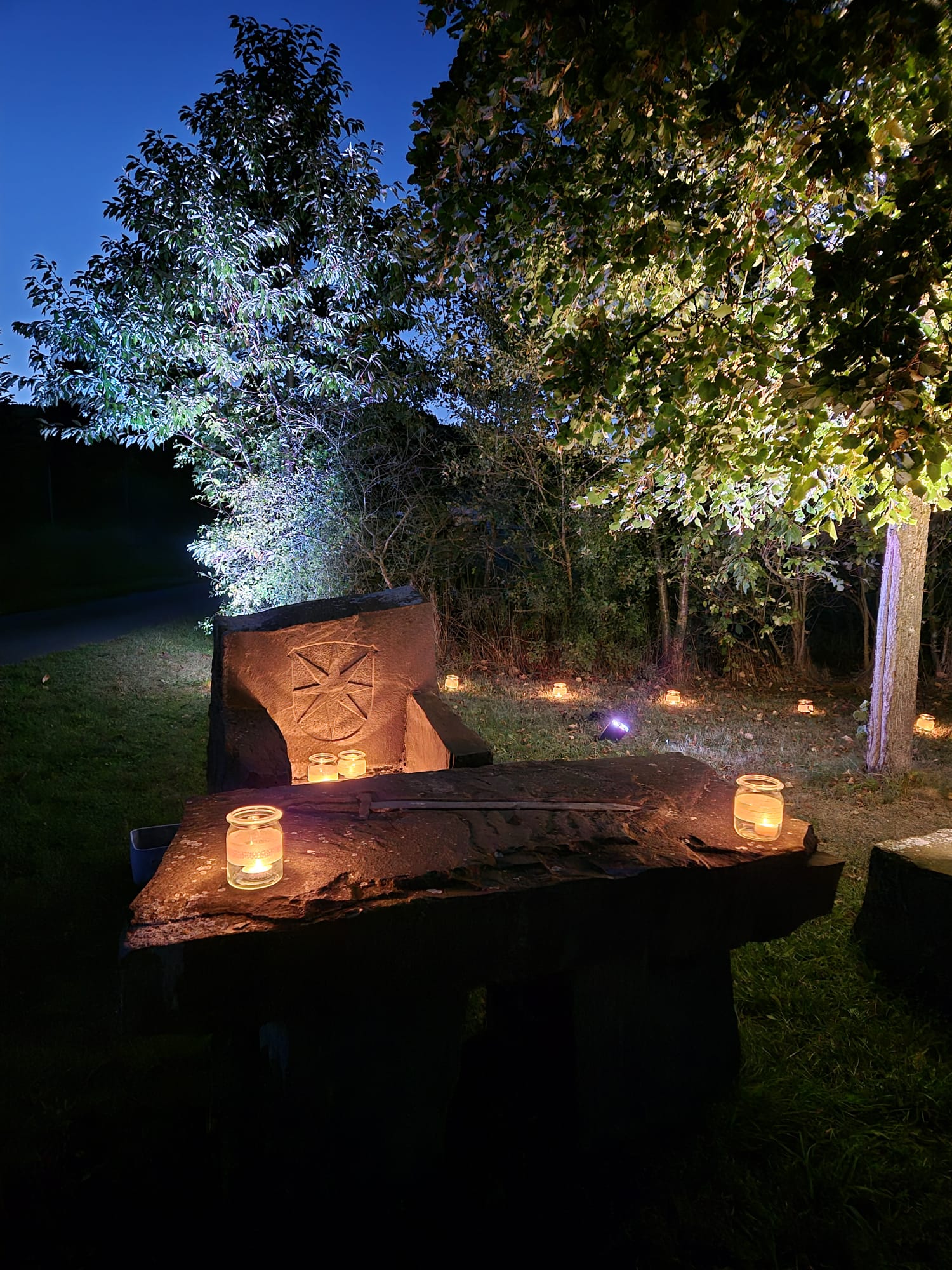 Der Freistuhl war für die 8 Freigrafschafts-Dörfer für freie Bauern und Adelige eine wichtige Gerichtsstätte der Waldecker Grafen (Grafengerichte). Besitzer waren von 1334 – 1663 die meiste Zeit die Grafen von Waldeck. Hier wurde Jahrhundertelang Recht gesprochen. Auch wir urteilen, verurteilen schnell und werfen den ersten Stein. Jesus sagt „Wer ohne Sünde ist, werfe den ersten Stein.“ An diesem besonderen Ort gab es zu diesem Thema Texte, die zum Nachdenken anregten.