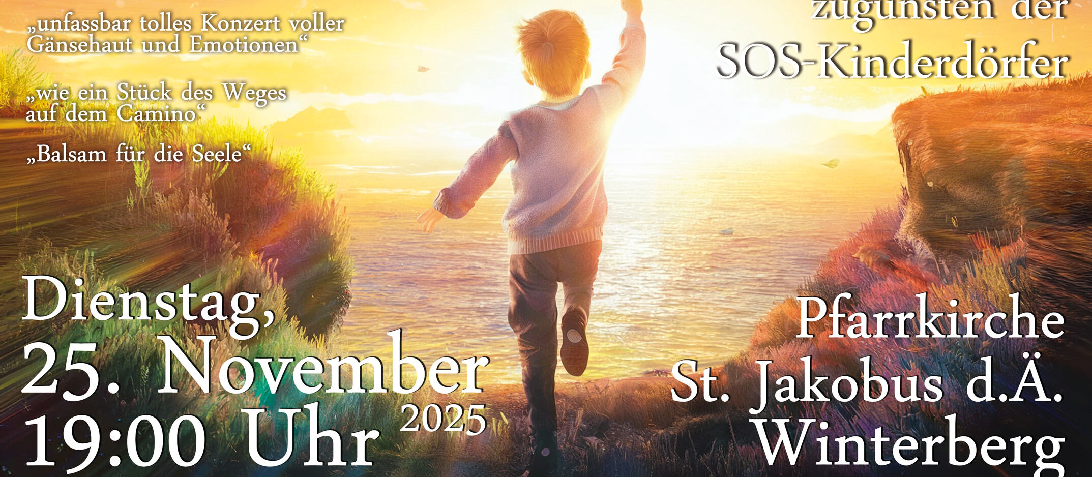 Das Ziel dieser Konzertreihe: Menschen mit Musik inspirieren, die Welt reicher an Erfahrung machen und 250.000 Euro für die SOS-Kinderdörfer sammeln. Sie sind herzlich eingeladen!