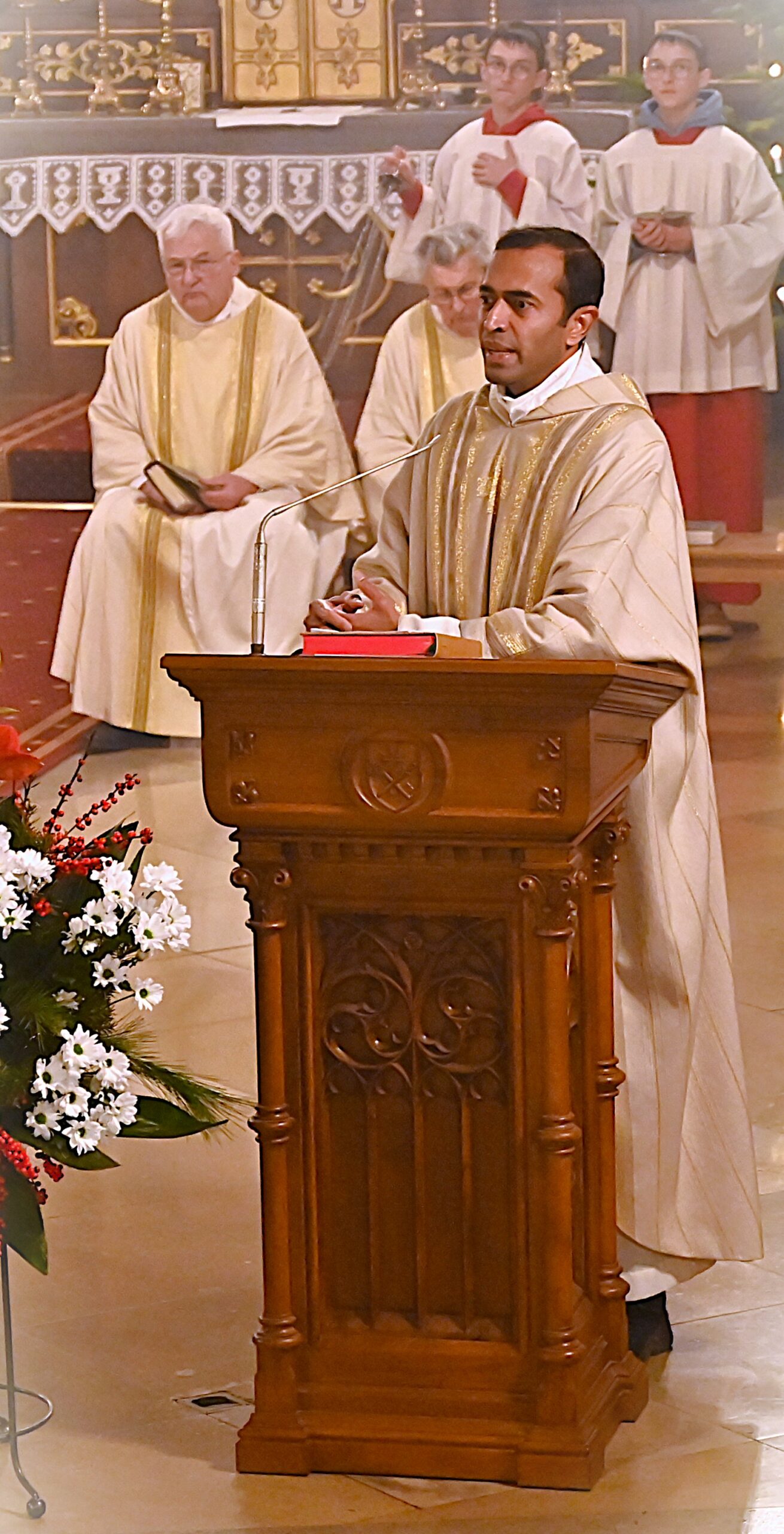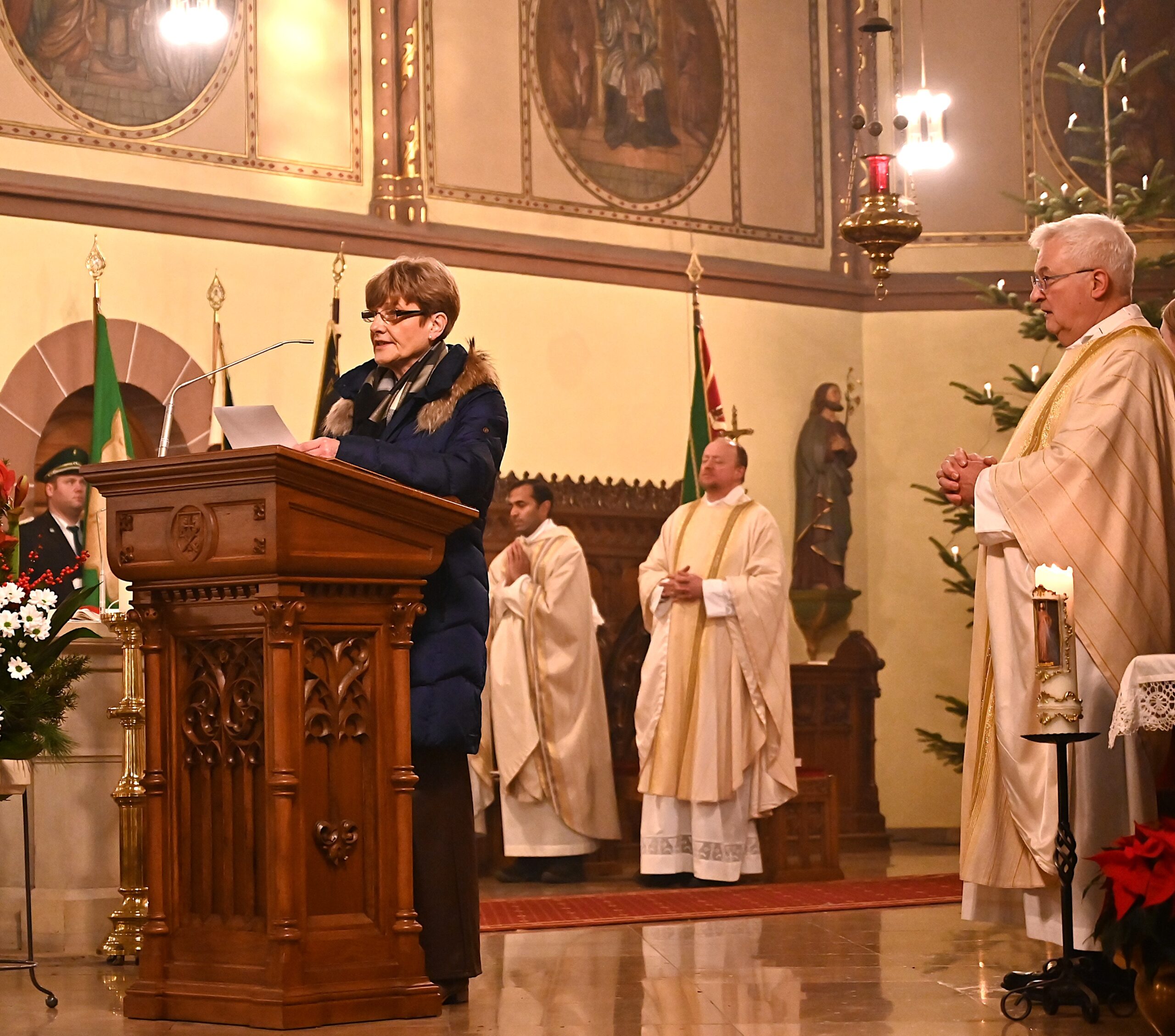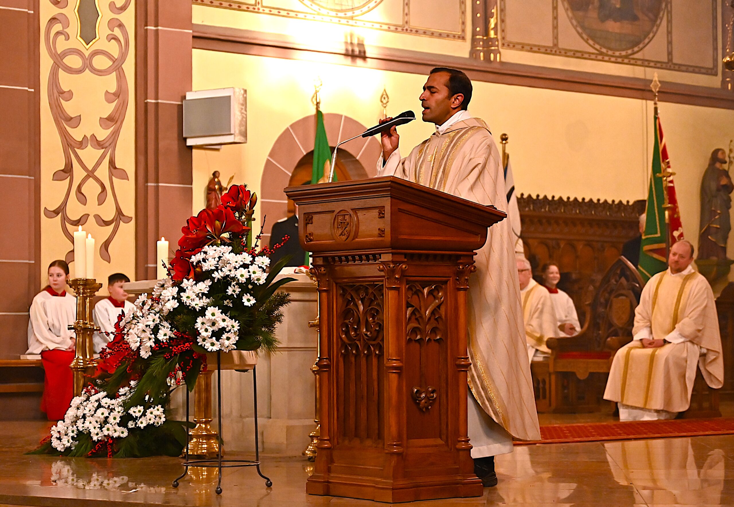 Vikar Jijo Pidiyath hielt sich mit seinen Antworten bewusst kurz, da er schon im Zeitungsbericht und im Weihnachtspfarrbrief vieles gesagt habe. Er bedanke sich bei all denen, die ihm von Anfang an mit Toleranz begegnet seien, die ihn großzügig unterstützt und ihm beim Einleben ins ordentliche Deutschland geholfen hätten. Sein Dank galt allen Wegbegleitern – vom Erzbistum Paderborn, über das Pastorale Team Medebach-Hallenberg bis hin zu jenen, die mit ihm die Heilige Messe feierten.