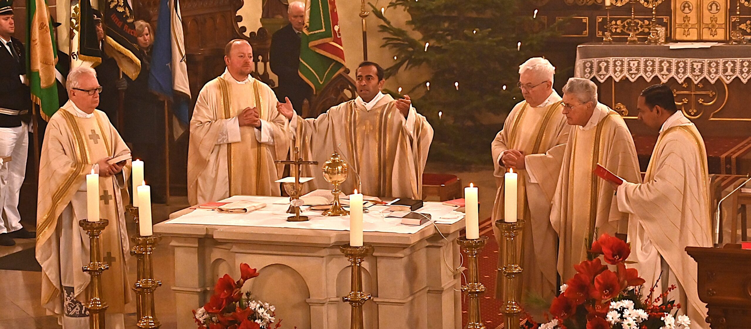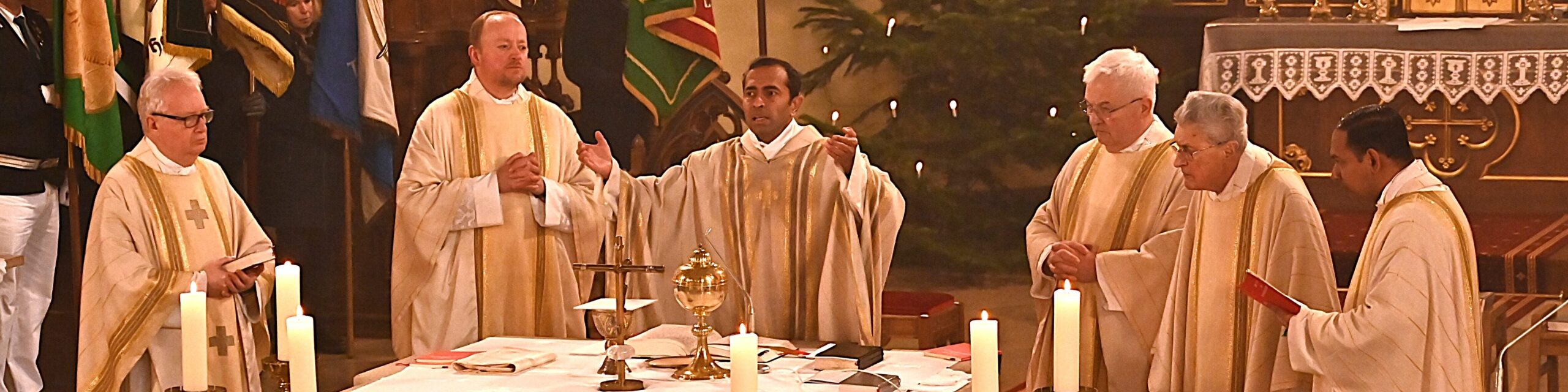 Am Sonntag, 28. Dezember, verabschiedete sich Vikar Jijo Pidiyath mit einer feierlichen Messe in St. Peter und Paul Kirche, Medebach an der eine große Gemeinde und viele Vereine mit ihren Fahnenabordnungen teilnahmen.