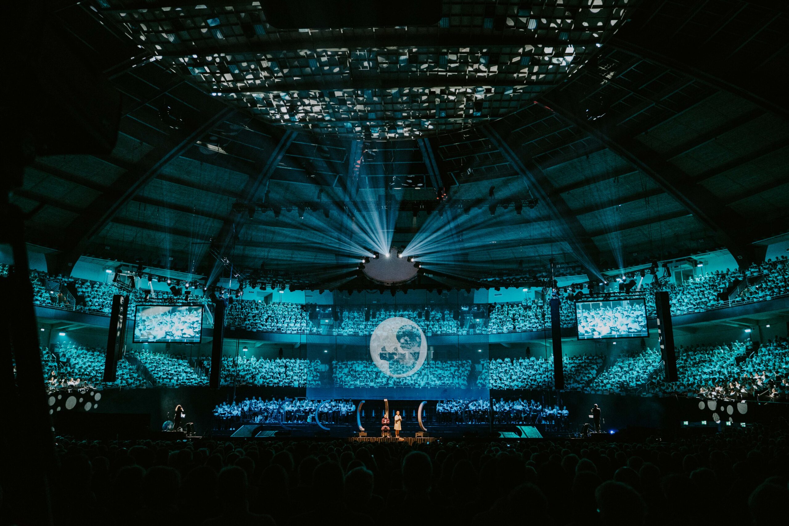 Das stimmgewaltige Lied „Im Auge des Sturms“ sorgte für Gänsehaut. Die Protestrufe „Make love not war“ und „Wir sind das Volk“ hallten kraftvoll durch die Halle und setzten ein deutliches Zeichen. Diese modernen Bezüge verbanden sich eindrucksvoll mit der biblischen Erzählung. Doch nicht nur die lauten, kraftvollen Passagen überzeugten: Besonders berührend waren auch die leisen Töne mit ihren Bezügen zur Schöpfungsgeschichte aus dem Buch Genesis. In diesen Momenten entstand eine fast andächtige Stille unter den Tausenden von Zuhörern.